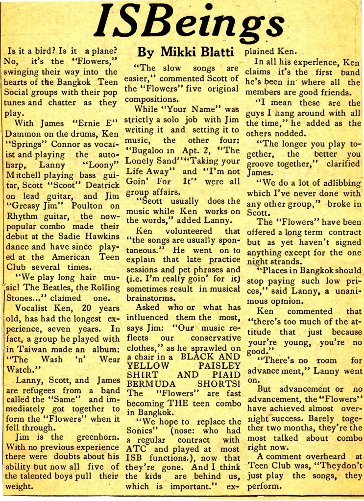 The Flowers – an American band formed in Bangkok a long, long time ago … in another galaxy …